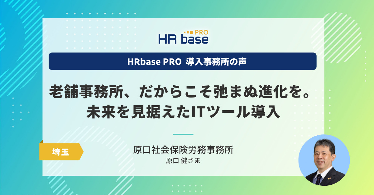 HRbase PROを導入してから、順次、顧問先の招待を行い、情報共有機能などを活用しています。HRbaseのサービスはとにかく情報が見やすいですね。システム内はもちろん、HRbase Solutionsの記事などは、価値がとても高いと感じています。さすが、社労士事務所の経営者が開発したシステムだけあって、顧客ニーズをしっかり掴んで開発されていると、とても感心しています。私たちは労務のプロであっても、見せ方のプロではないため、うまく活用させていただきます。