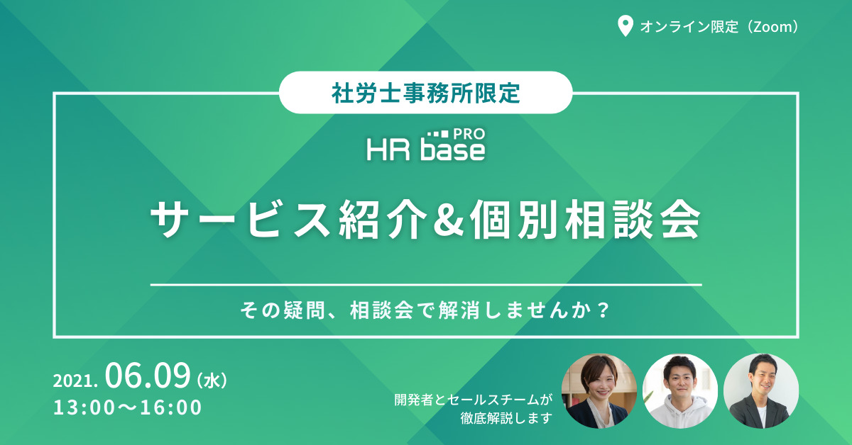 クラウドツールの導入には、さまざまな検討材料が必要です。HRbase PROでは、安心して導入いただくために毎月の個別説明会を実施しております。何ができるか、事務所のどの課題を解決できるかを確認しにいらしてください。