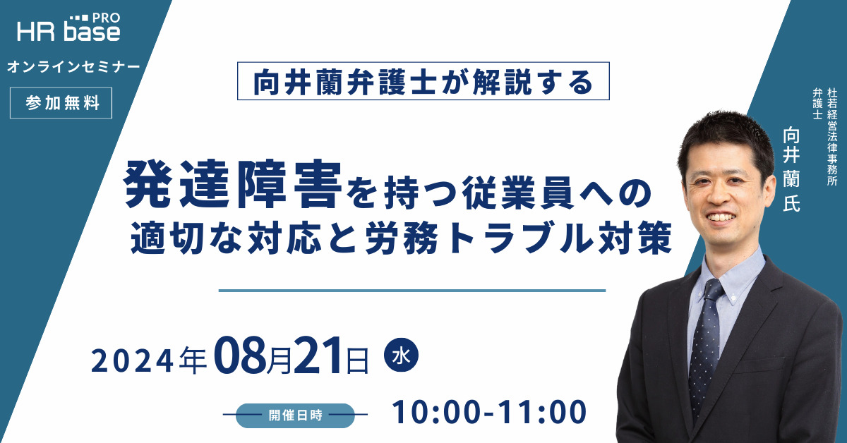 | セミナー名 | 【向井蘭弁護士が解説する】発達障害を持つ従業員への適切な対応と労務トラブル対策 |