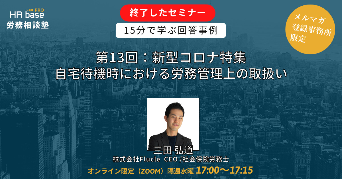 | 【第13回】15分でスキルアップ! HRbase PRO労務相談塾【毎週水曜17:00〜17:15】 | |