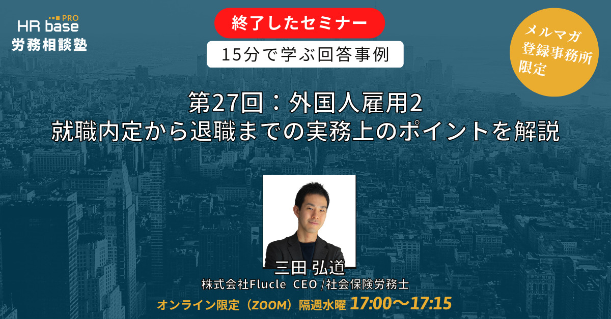 | 【第27回】15分でスキルアップ! HRbase PRO労務相談塾【隔週水曜17:00〜17:15】 | |