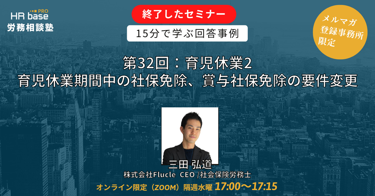 | 【第32回】15分でスキルアップ! HRbase PRO労務相談塾【隔週水曜17:00〜17:15】 | |