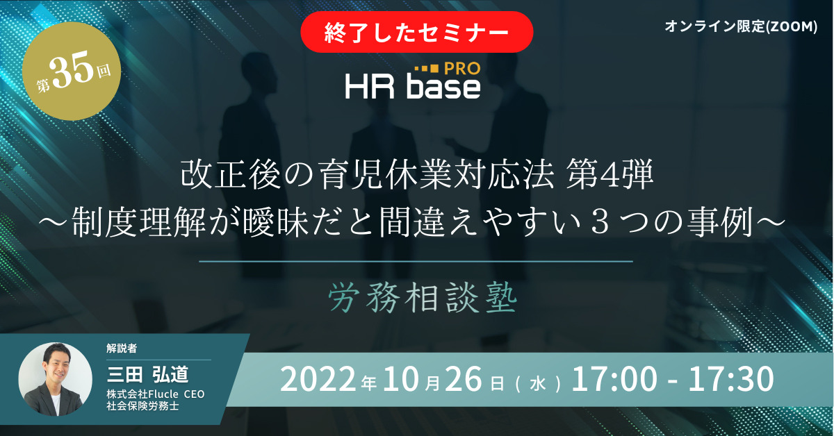 | 改正後の育児休業対応法 第4弾~制度理解が曖昧だと間違えやすい3つの事例~ 【第35回 労務相談塾】 | |