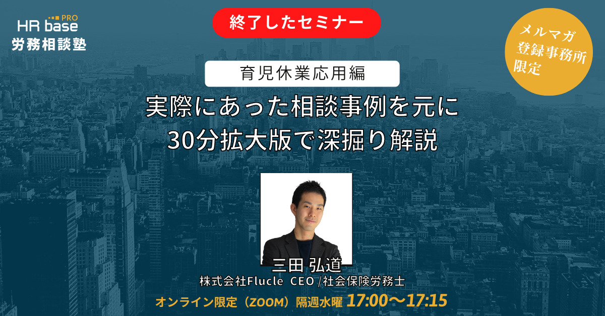 | 【HRbase PRO労務相談塾】育児休業応用編 実際にあった相談事例を元に30分拡大版で深掘り解説 | |