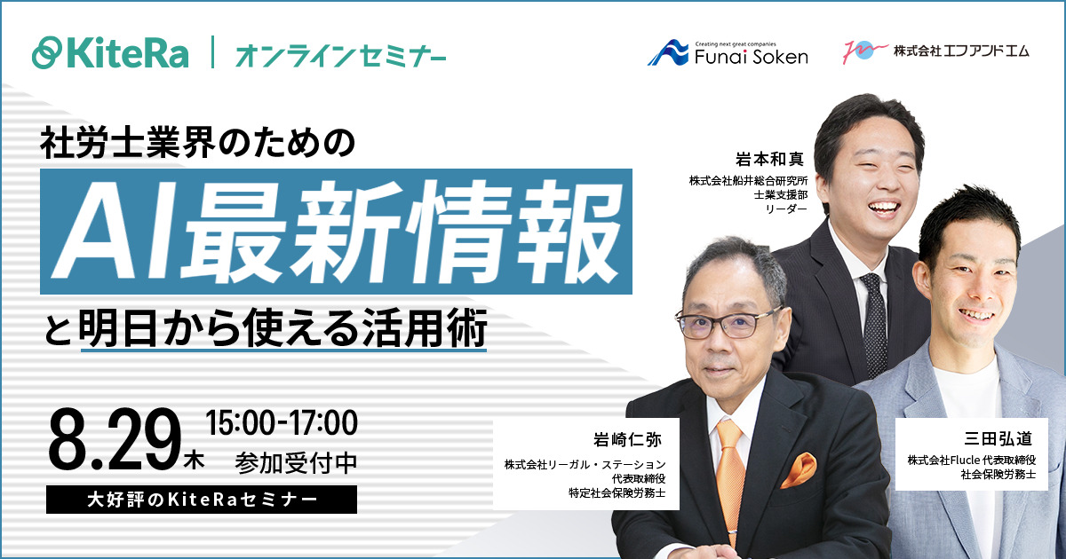 セミナー前半では、株式会社船井総合研究所の岩本様と株式会社Flucleの三田が、社労士業界におけるAI活用の最先端トレンドを分かりやすくお伝えします。業界の未来を左右する重要な情報をいち早くキャッチアップできる絶好の機会です。