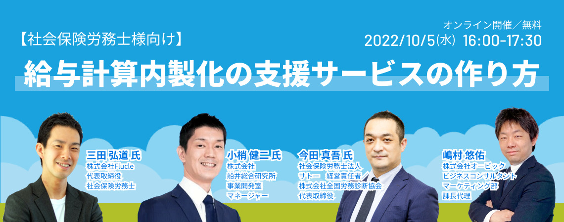 社労士の新たなサービスとして注目される「内製化サポート」。クラウドの台頭により顧客ニーズが変化している中、従来のアウトソーシング型サービスも変化する事が求められています。全国に先駆けていち早く内製化サポートを実現したOBC奉行認定社労士が、サービスメニュー、フロー、料金設定まで事例にもとづき、実務レベルでサービスの作り方を分かりやすく解説します。