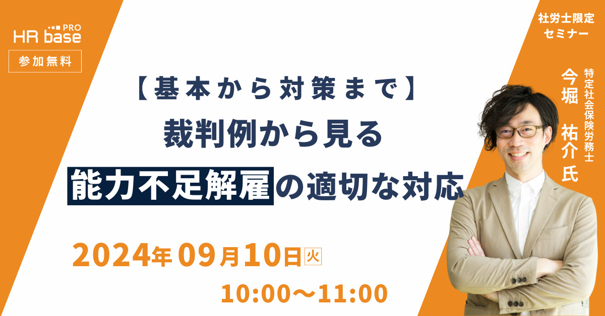 | セミナー名 | 【基本から対策まで】裁判例から見る能力不足解雇の適切な対応 |