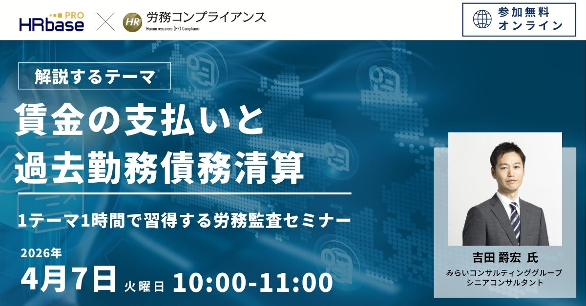 本セミナーでは、金融機関向けの勉強会・セミナー登壇で受けた質問や相談への回答を参考に、実務に役立つ労務コンプライアンス調査の対応方法について、みらいコンサルティンググループ吉田氏よりお話していただきます。