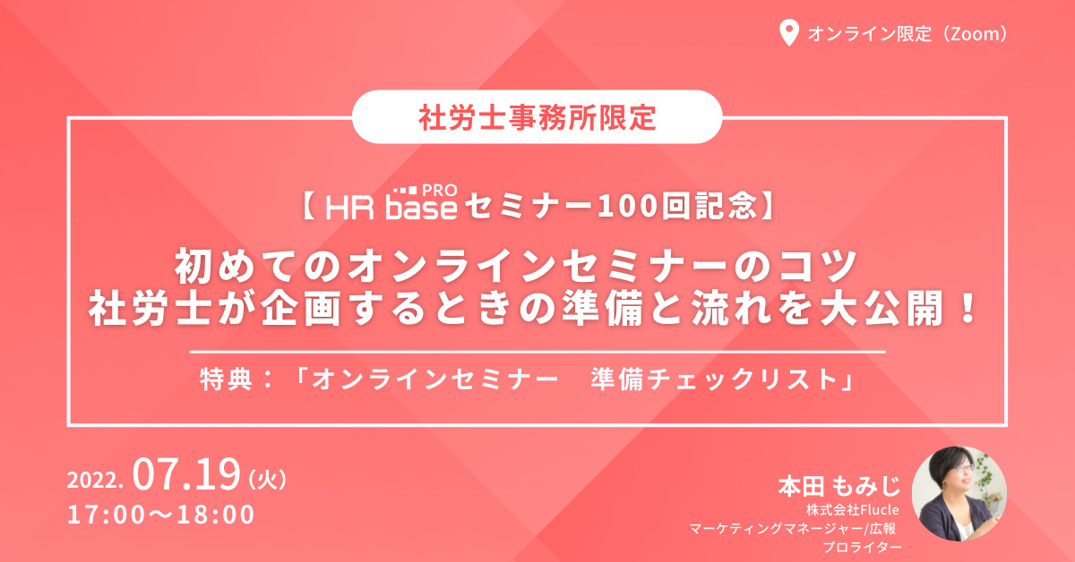 | 【HRbase PROセミナー100回記念】初めてのオンラインセミナーのコツ 社労士が企画するときの準備と流れを大公開! | |