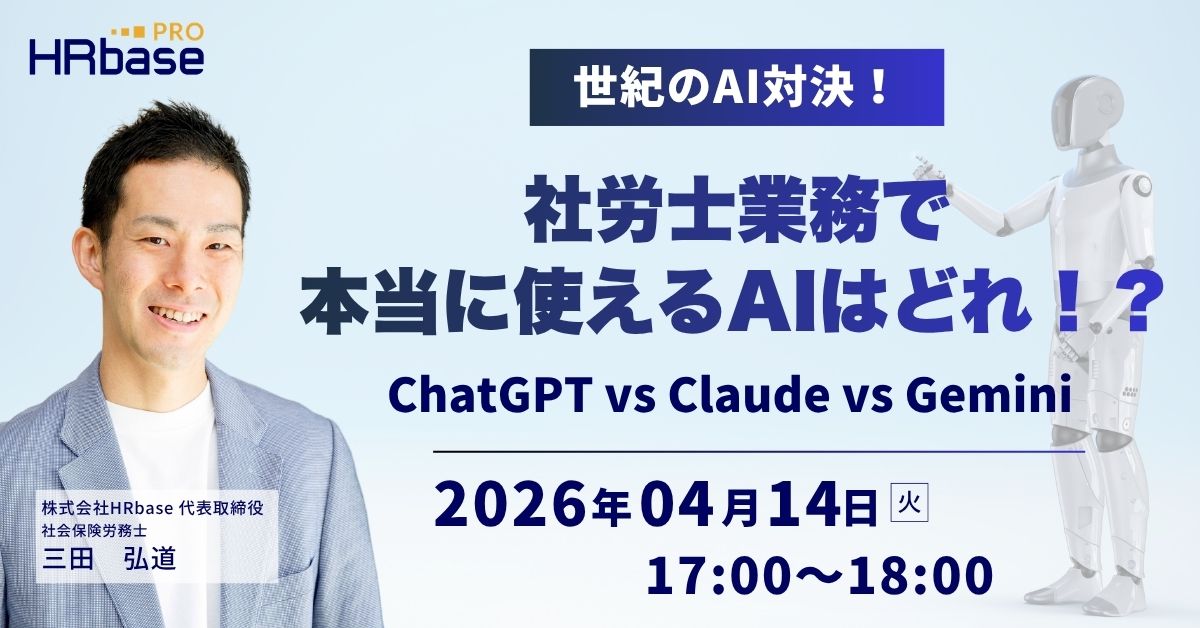 | セミナー名 | 世紀のAI対決!社労士業務で本当に使えるAIはどれ!? ChatGPT vs Claude vs Gemini |